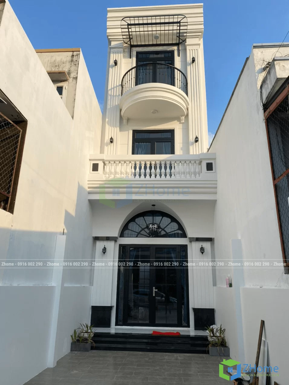 Tông màu trắng chủ đạo cùng với các yếu tố tân cổ điển như cửa sổ lớn, cột trụ, và các chi tiết trang trí tinh tế mang lại cảm giác của sự thanh lịch, tinh tế và đẳng cấp cho ngôi nhà này.